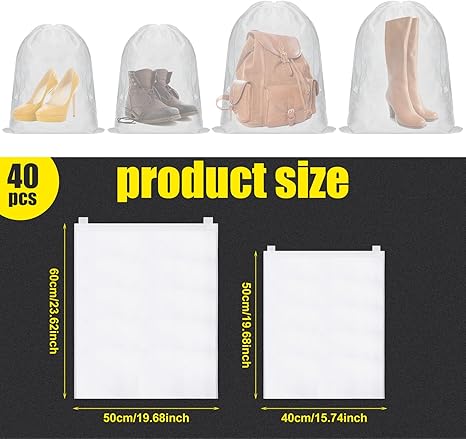 Abundant to Choose: you will receive 40 pieces of nonwoven fabric dust bags in 2 sizes, 20 pieces per size, including about 60 x 50 cm/ 23.6 x 19.7 inches and 40 x 50 cm/ 15.8 x 19.7 inches, suitable for summer use, the sufficient quantity is enough for your daily needs and replacement demands, sharing them with your family, friends or neighbors is also nice