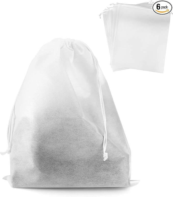 Drawstring Dust Covers, 6 Pcs Breathable Non-woven Fabric Large Cloth Storage Pouch String Bag for Handbags Purses Shoes